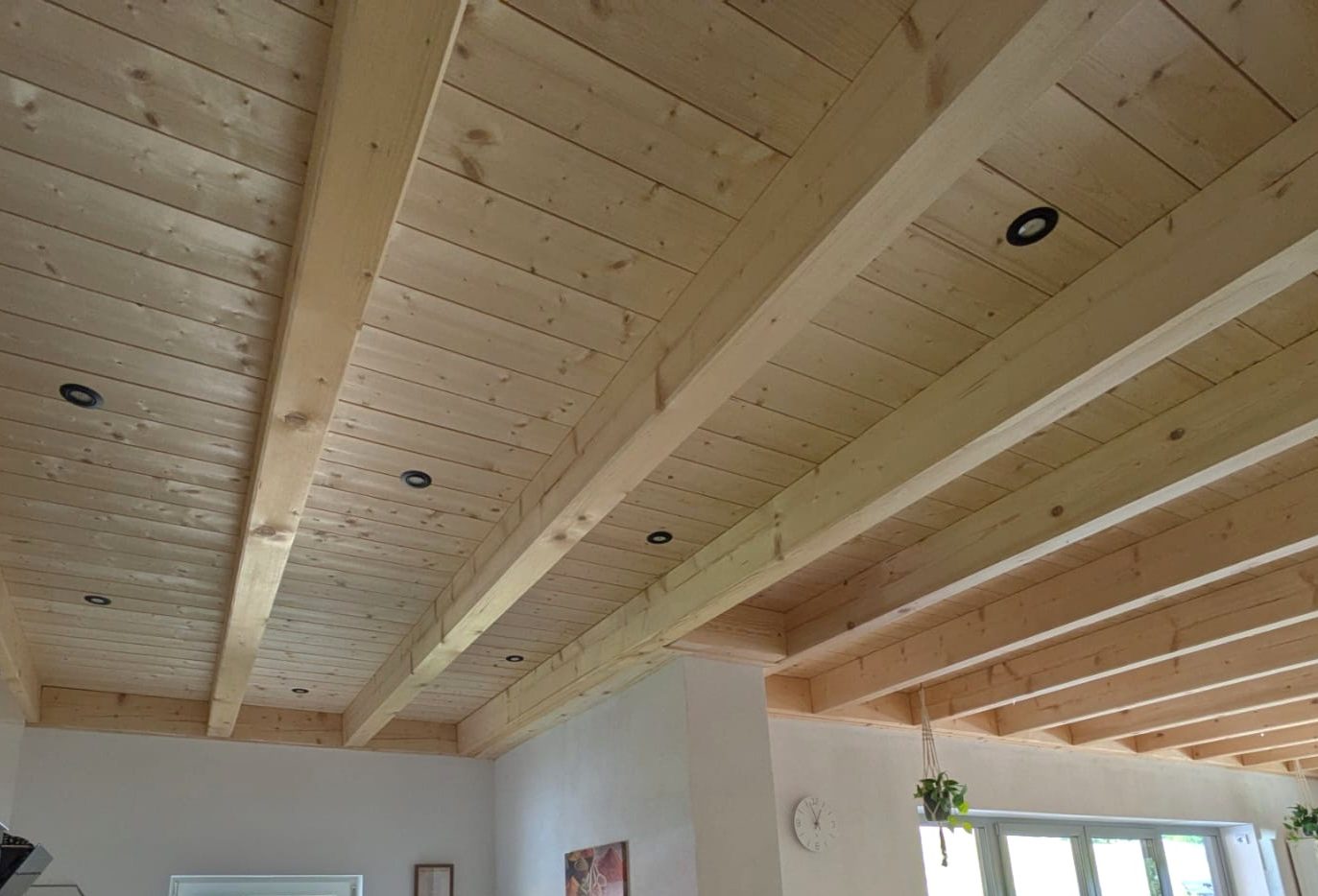 Neubau Dachstuhl auf Bestandsgebäude mit Sichtdecke